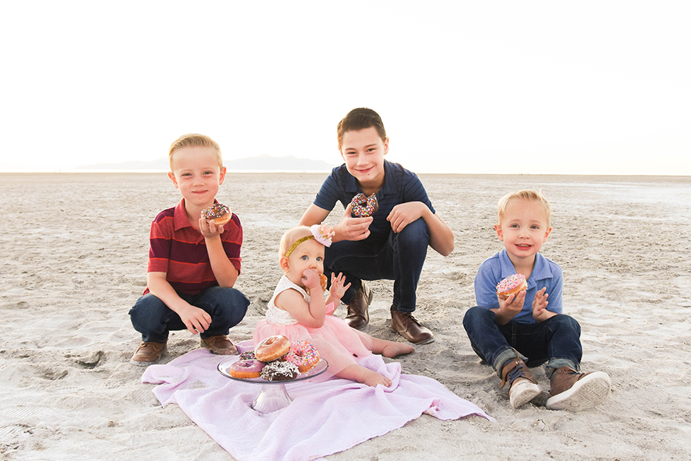I have loved the photos I’ve gotten of this family over the years! The Great Salt Lake was perfect and beautiful at this shoot, and it was a blast to have their first little girl as the star of the show on her first birthday. Just looking back at these photos makes me want to go out and get a donut!